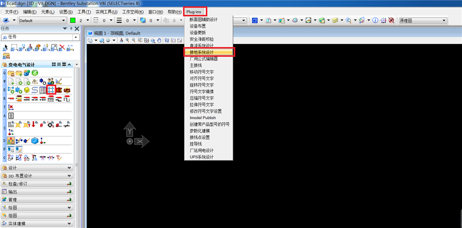 在plugins中选择接地设计模块,或者在变电电气设计中,选择接地设计模块图标,打开接地模块。