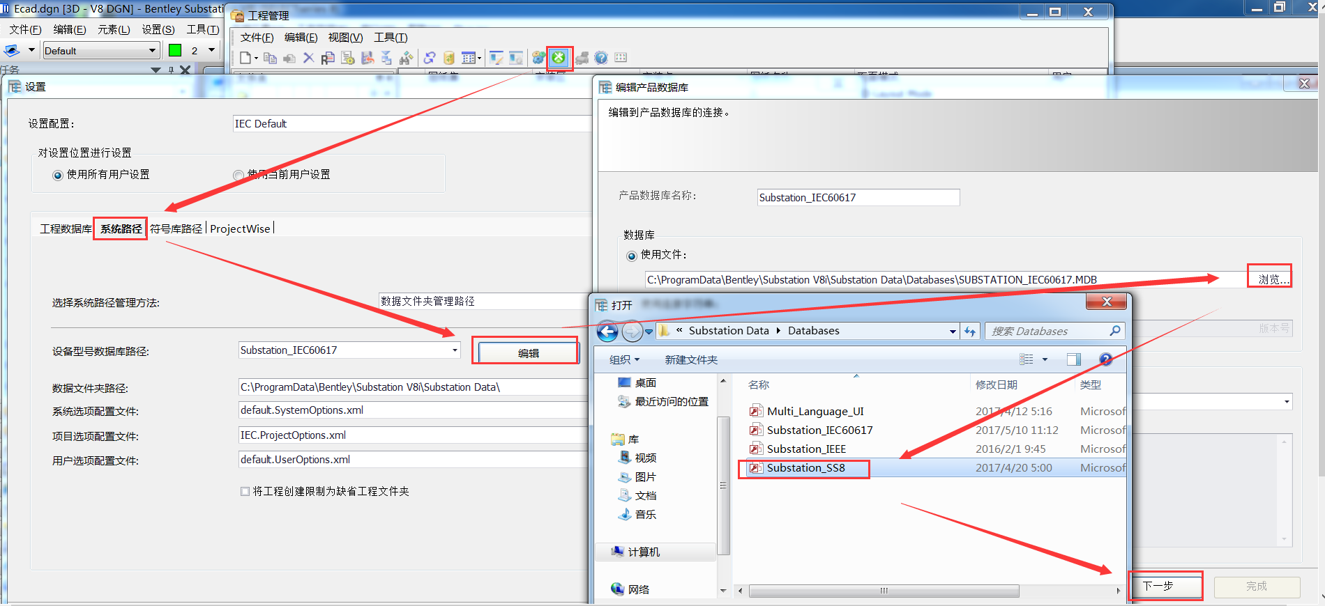 1.安装Bentley Substation V8i SS8 08.11.13.65版本。由于当前中国工具包是基于Bentley Substation,安装工具包前需正确安装正确版本的Substation。