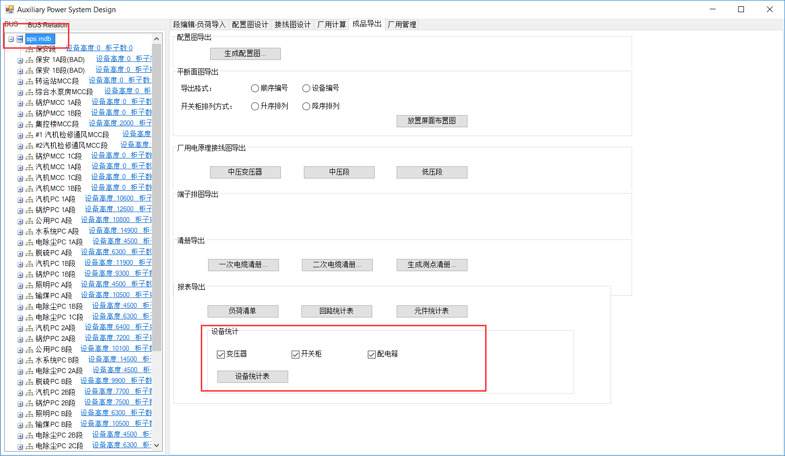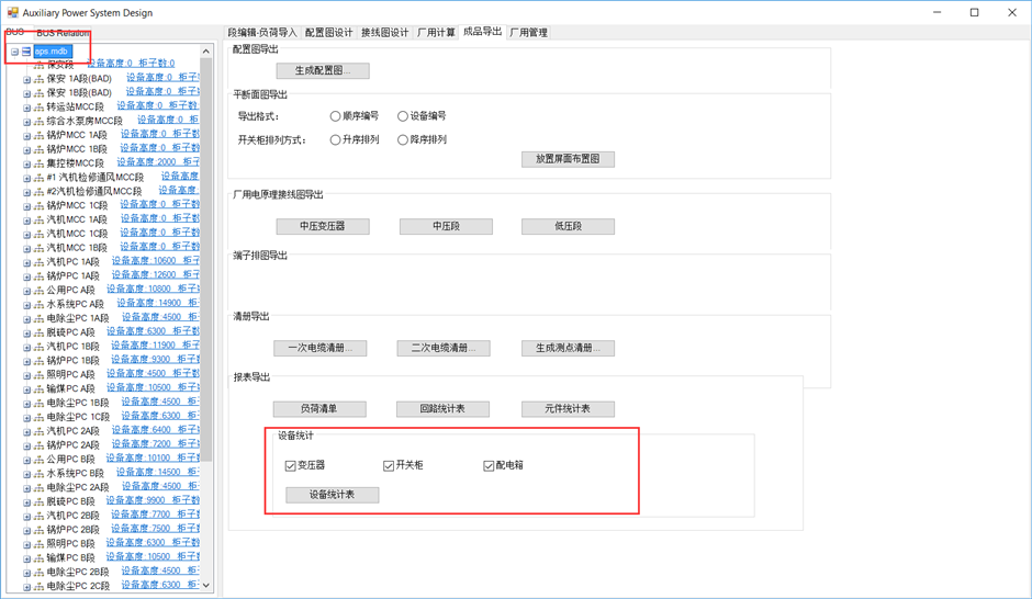 用户也可以选择某中压段,则程序只统计该段下勾选的设备类型。
