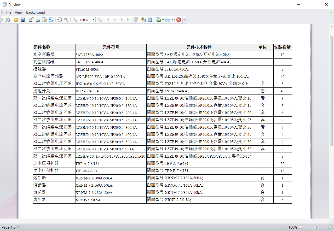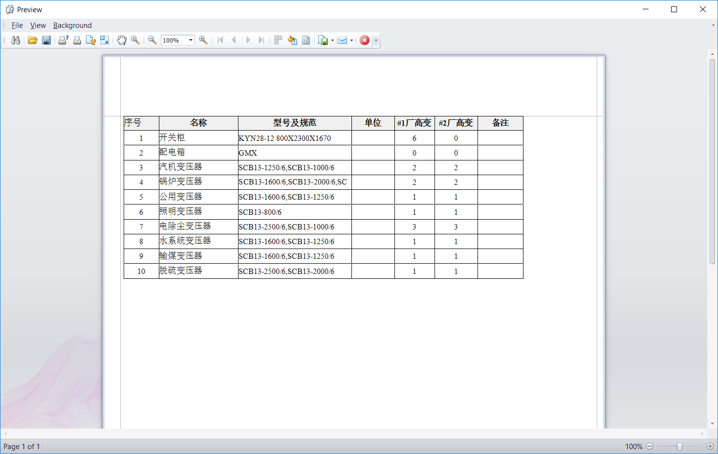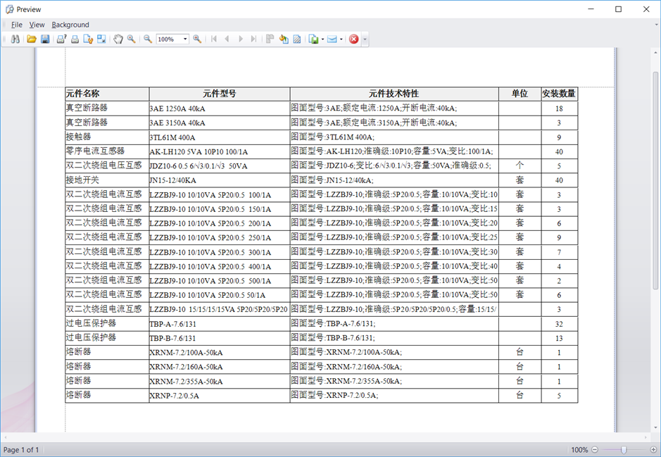 生成一次电缆清册需切换图纸至该段配置图。如选中#1机6Kv 1A段,切换图纸至#1机6Kv 1A段配置图中,点击一次电缆清册,则该报表为#1机6Kv 1A段下所有电缆统计。