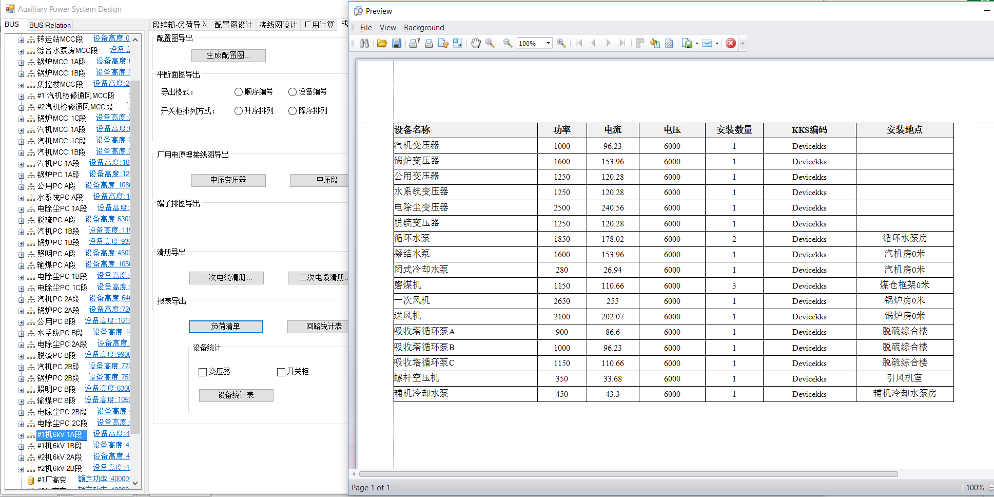 选中段点击“负荷清单”。列出该段下所有负荷。KKS编码和安装地点可以在段编辑界面进行手动编辑。若未填写,则两列为默认或者为空。