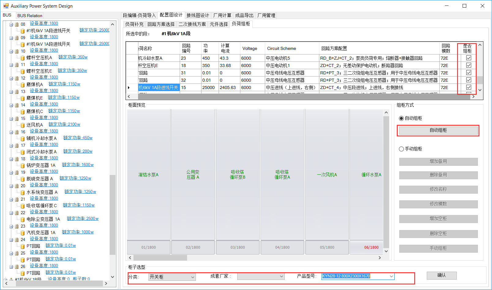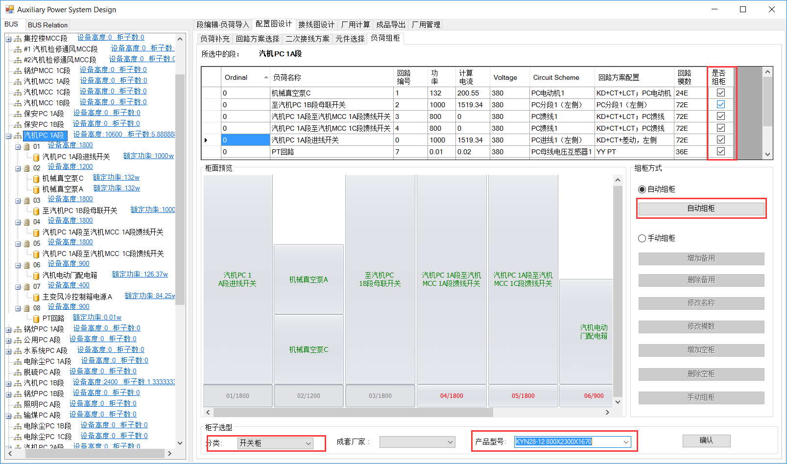 4) 自动组柜和开关柜选型
