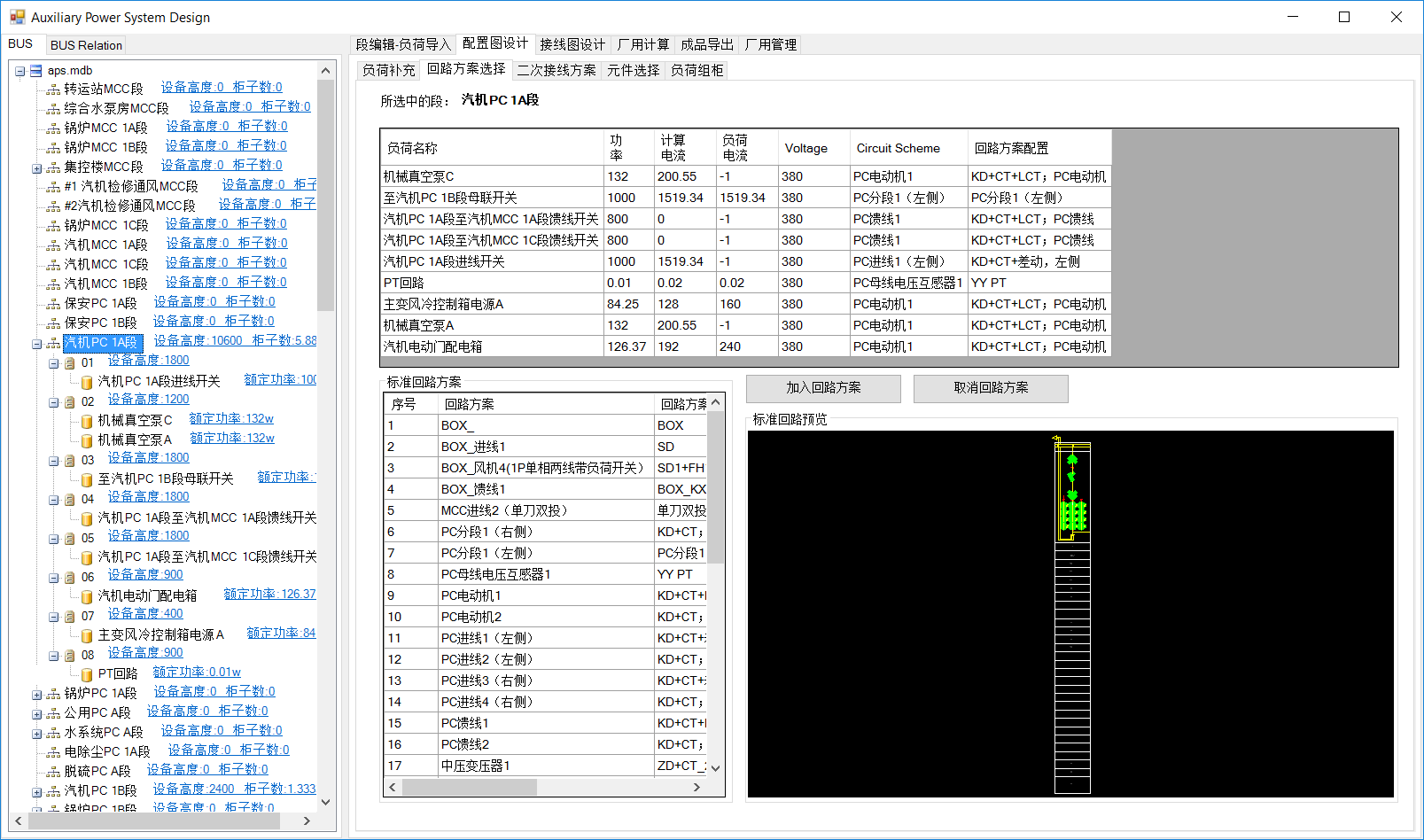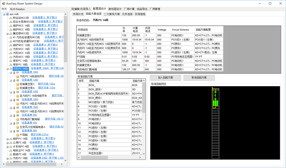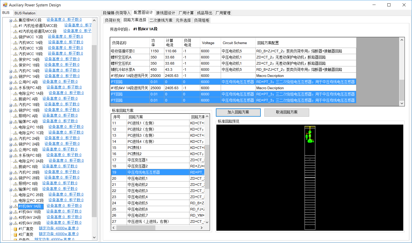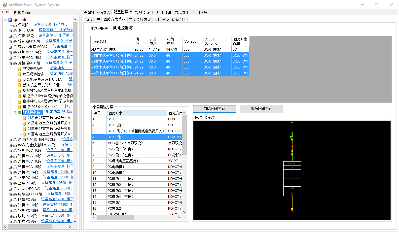 该操作为PC段一致,区别在于各负荷选择的回路方案不同。选中集控楼MCC段,分别选择回路方案。