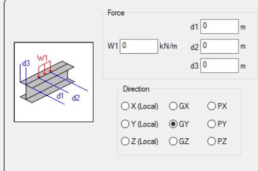 荷载在相应于整体坐标轴方向上沿着构件的投影长度分布。这时,荷载作用的起始点和终点是沿构件的投影长度来确定的而不是构件本身的长度来确定的。