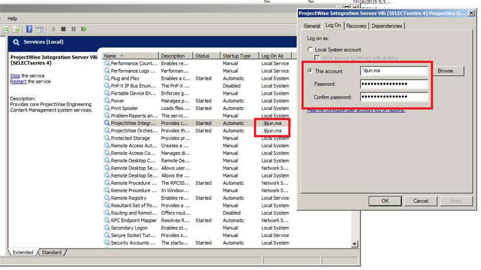 2. PW服务器的当前Windows用户要有“Log on as a service"权限;
