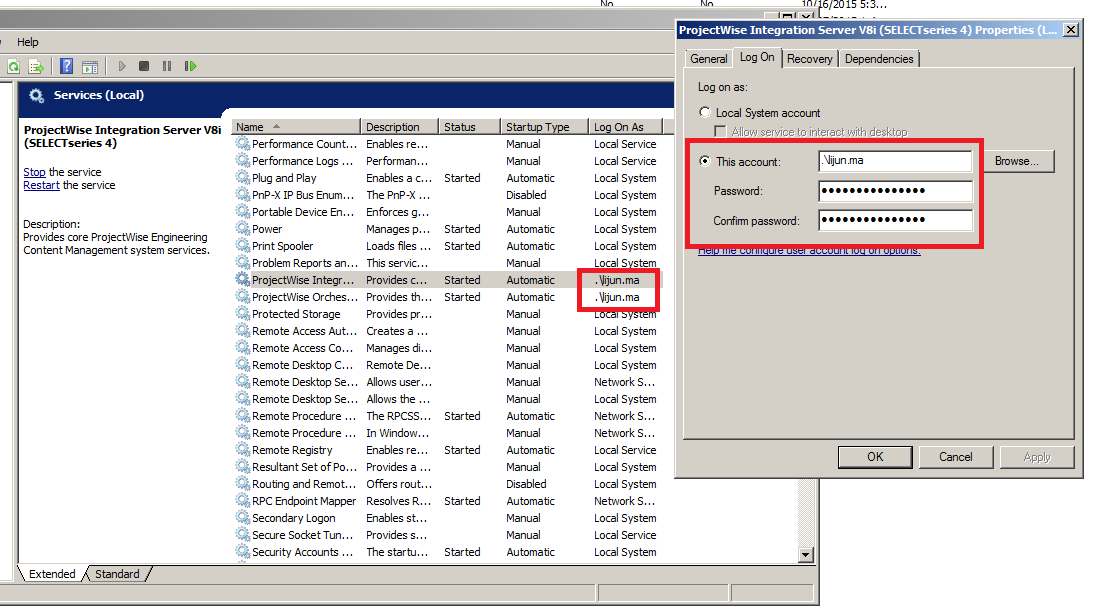 3. PW服务的运行用户必须是特定的Windows用户,而不是Local System Account。