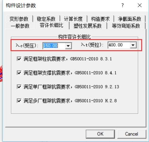 如何在设计中让程序不检验构件长细比?