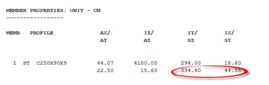 通过添加打印命令“print member properties”可以在结果文件中查看弹性截面模量Sx,Sy