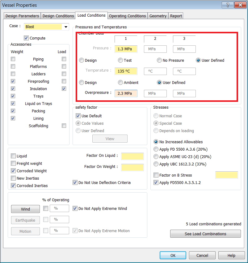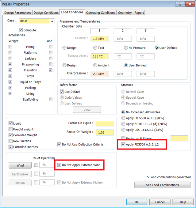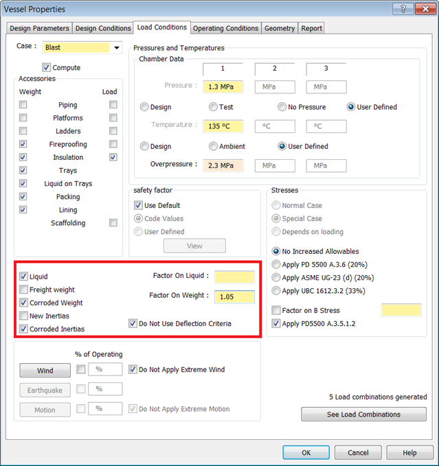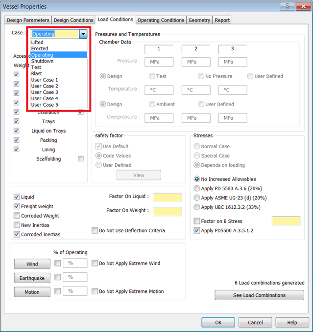 Load Combinations in AutoPIPE Vessel