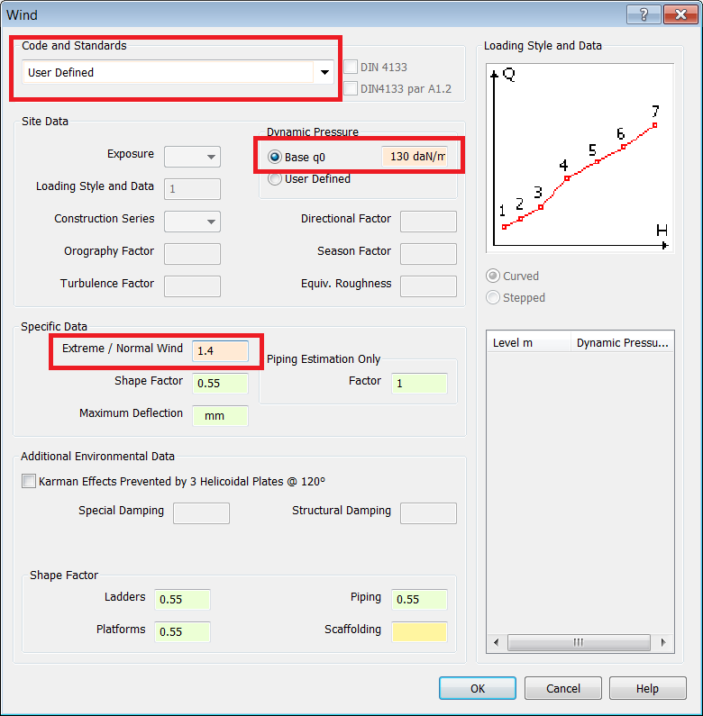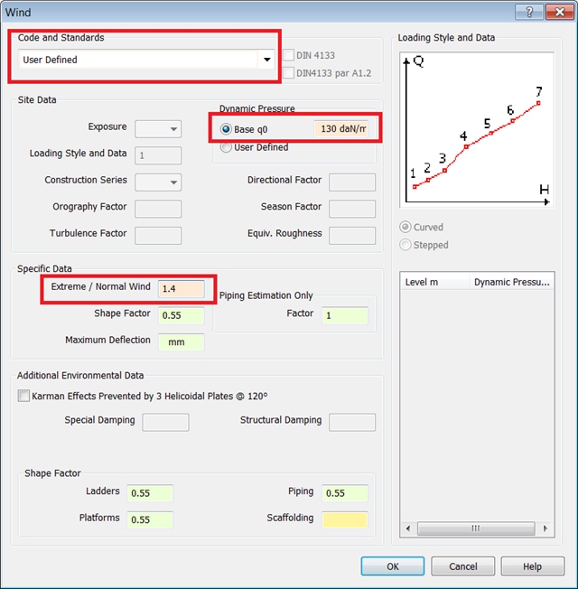 - Define a Dynamic Pressure by typing 130 daN/m² in the Baseq0 field.