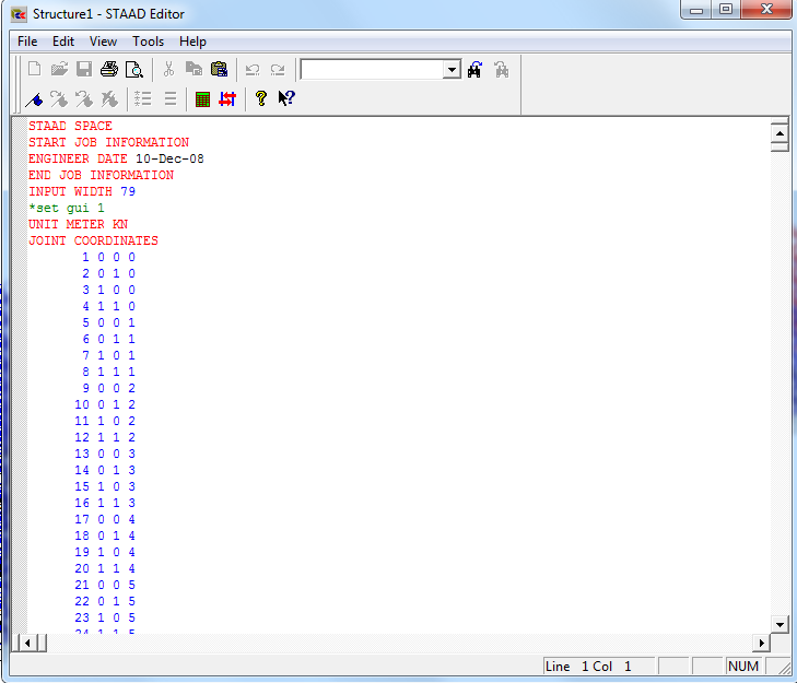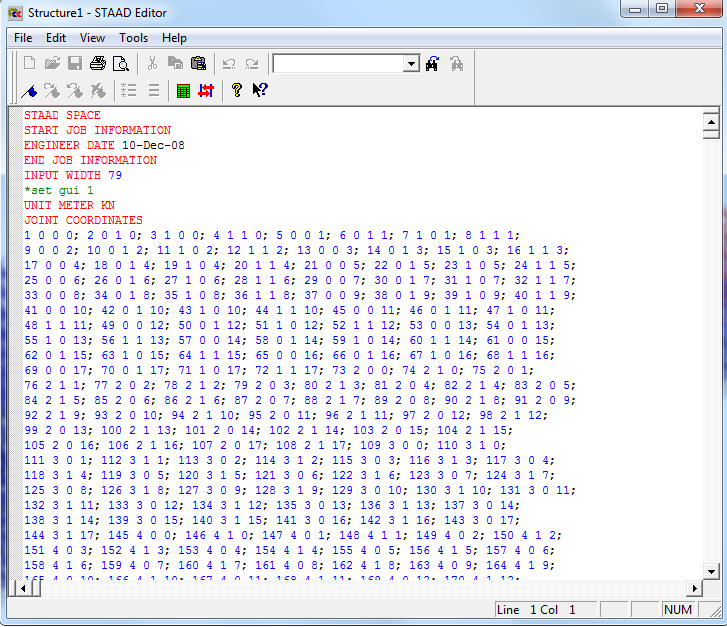 怎么让STAAD文本编辑器中几何信息的命令行按照每个单元一行显示?