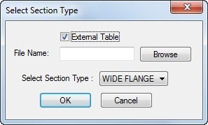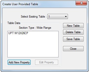 2. 点击New Table创建新的截面表,如果勾选External Table则后续的截面属性数据将保存于目录下的UPT文件中,不勾选则这些数据直接记录在模型文本编辑器Editor中;
