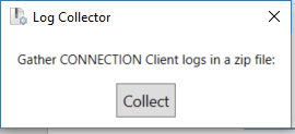 2. Cuando la ventana de Log Collector aparezca, haz clic en recopilar y proporciona un nombre para el archivo y localización\directorio donde será guardado.