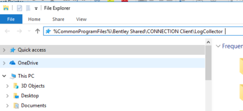1.Introduce lo siguiente en File Explorer: %CommonProgramFiles%\Bentley Shared\CONNECTION Client\LogCollector