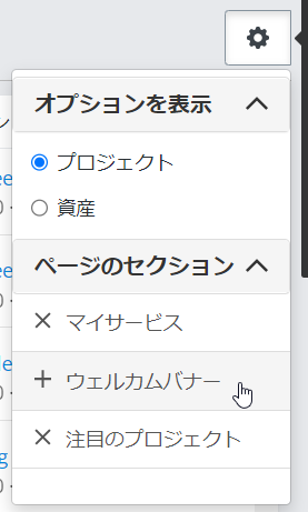さあ始めましょう...のページを非表示にしている場合は右上の歯車アイコンをクリックし、ウェルカムバナーを選択することでページを再表示できます。