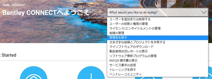 https://connect.bentley.com/ URLのCONNECT Centerをブラウザより開きます。
