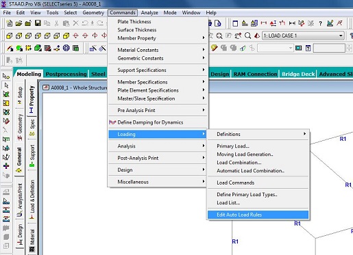 1.启动STAAD,选择 Commands--Loading—Edit Auto Load Rules,如下图∶