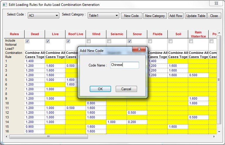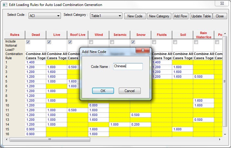 2.弹出如下Edit Loading Rules for Auto Load Combination Generation对话框,可以在对话框中选择New Code,并在弹出对话框中Code Name中键入Chinese后点击OK,然后退出STAAD程序。如下图∶