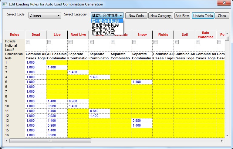 4.再次启动STAAD,新生成的Chinese自动荷载组合即可在程序中使用了。