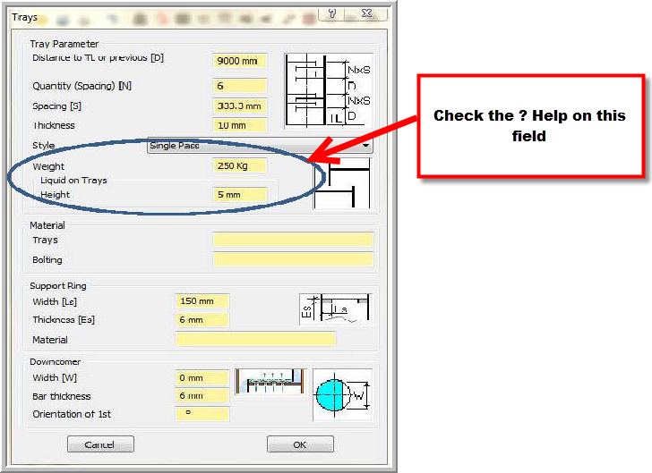 The height of liquid on the trays must be input (Typical value = 5mm).