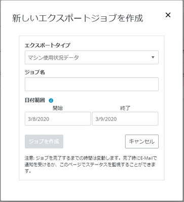 [新しいエクスポートジョブを作成]をクリックすると、[新しいエクスポートジョブを作成]ダイアログが開きます。