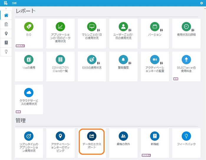 4つのエクスポートタイプがあり、それぞれの目的に合わせたレポート形式です。 各エクスポートタイプの名称に合ったレポートとなっています。