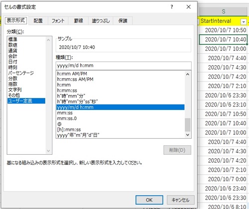 間隔データレポートの使用開始時間と終了時間の表示設定をExcelで変更例 :