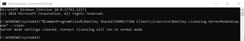 "%CommonProgramFiles%\Bentley Shared\CONNECTION Client\LicService\Bentley.Licensing.ServerModeSetup.exe" --clear