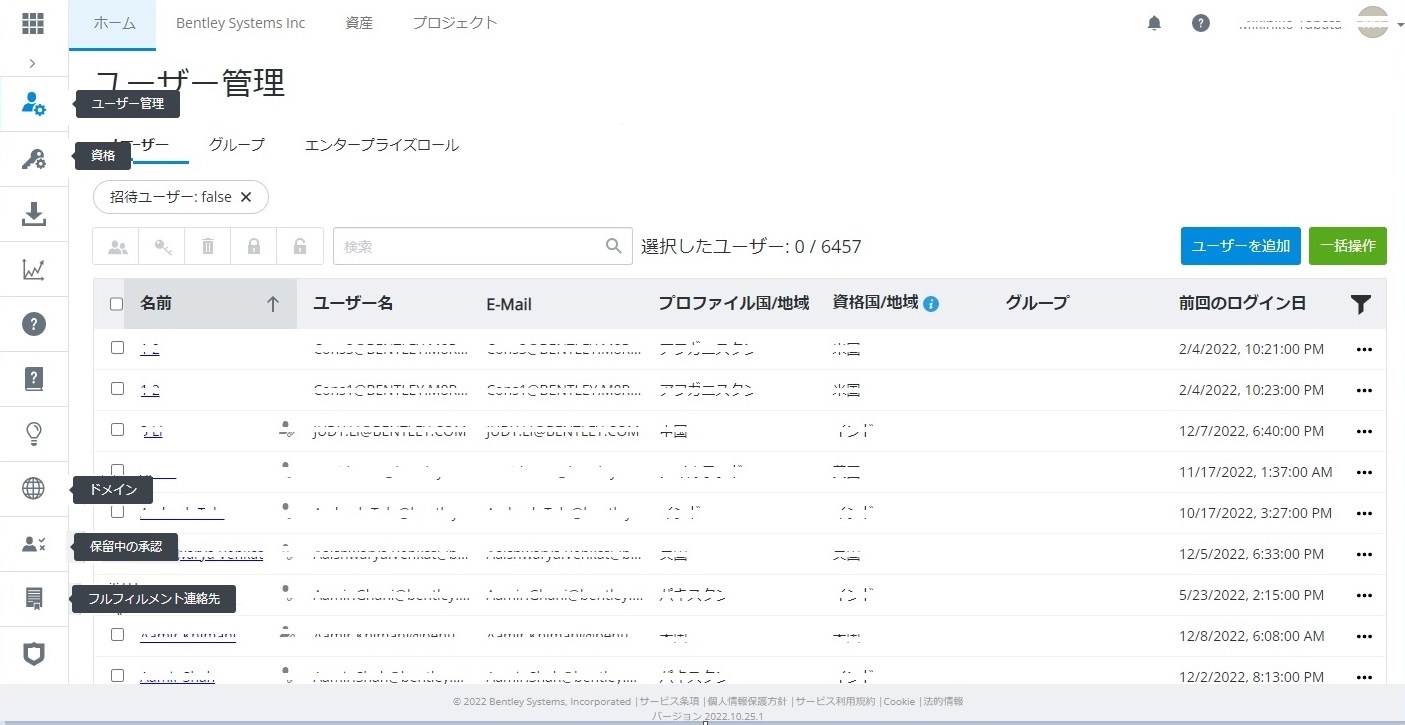 ユーザー管理の操作方法について、以下のホームページをご参照ください。