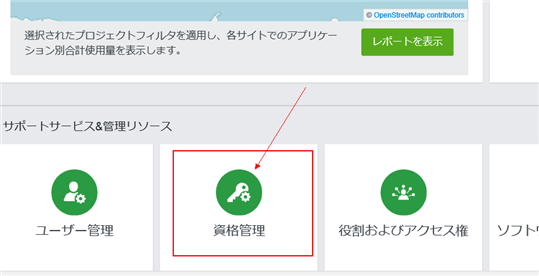 1.Bentley Cloud Servicesのサブスクリプションサービスポータル(https://connect.bentley.com/Enterprise/)から、「資格管理」を選択しアクセスします。操作には、Account Admin または Co-Administrator の権限が必要です。