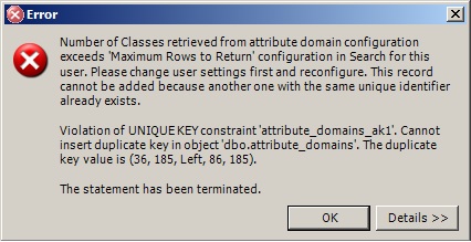 While updating the "Attribute Domain Definitions" and I got an error "This record cannot be added because another one with the same unique identifier already exists", I had followed the below steps: