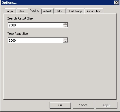 To overcome this issue, we need to increase the “Tree Page Size” and “Search Result Size” in eB Director --> Tools --> options --> paging.