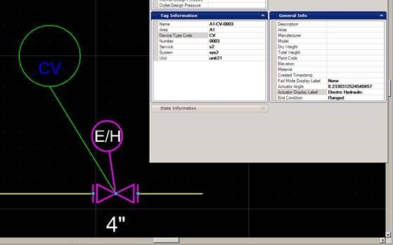 In drawing a P&ID many times after placement of Control Valves with Actuators the physical Actuator has to be changed. How does one do this? The OpenPLANT PID interface allows the users to make complete actuator change from one type to another and can also change the Actuator Angle itself via the Element Information Dialog as outlined below: