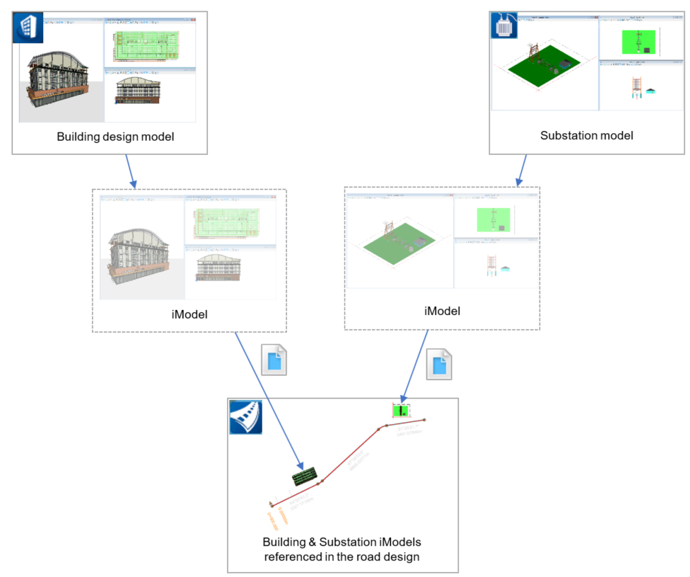 Architekt und Elektrik veröffentlichen ihre Gebäude- und Unterstations-iModels jeweils im OUT-Ordner des WorkSet.