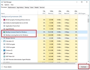 タスクマネージャーでBentley.Licensing.ServiceとBentley.Connection.Clientのプロセスがあれば、終了します。