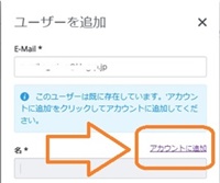 もし、「このユーザーは既に存在しています。"アカウントに追加"を。。。」との表示がされた場合、「アカウントに追加」を押してください。