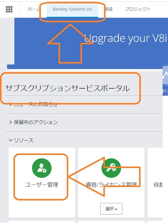 サブスクリプションサービスポータルを開き、「ユーザー管理」からも操作できます。