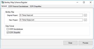 The following describes using Schema Register for creating a Bentley Map schema from Esri shapefiles.