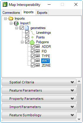 Opening the VRT file in as an Import in the Interoperability dialog allows you to specify the Spatial Criteria, Feature Parameters, Import Parameters, and Feature Symbology.