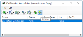 When all of the source elevation data has been added, generate the STM. Note that this may take some time depending on the volume of data to process.