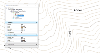 Contour symbology and spacing can be edited via the Element Information dialog.
