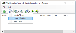 The new STM is added to the Scalable Terrain Model dialog and the STM Elevation Source Editor opens.