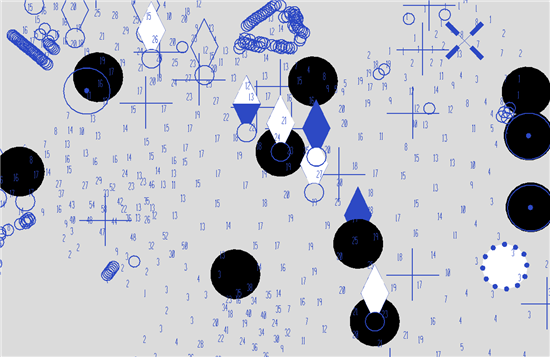 - After import, instances of your target feature class will consist of point-cells with either symbols or text as shown in the following: