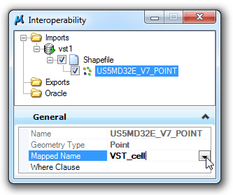 - In the Interoperability application, redirect the incoming feature instances for your import to the target feature class using the "Mapped Name" property as shown here: