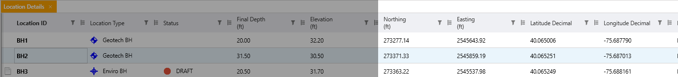 The Location Details Grid displays both: