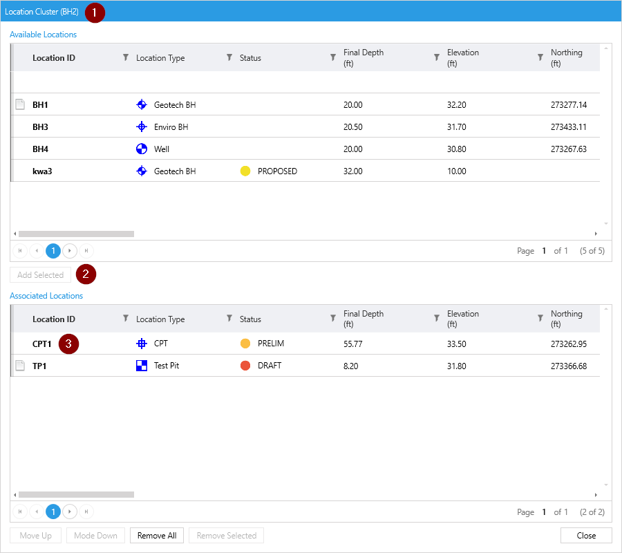 In order for two or more locations to be displayed on a log, they need to be associated in OpenGround Professional.