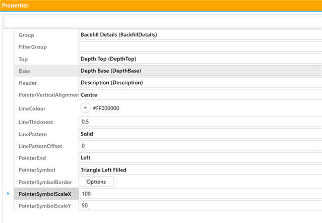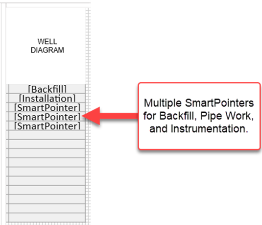 This Object is designed specifically to be used in a well diagram using the backfill, pipework, and instrumentation tables and fields in the smart pointer object properties. It is also only intended to be used in conjunction with an adjacent column (left or right) that has a text object(s) with callouts that match either the backfill, pipe work, or instrumentation descriptions (IE in the adjacent text column all of these would typically be in a Well Details column), but you could have a separate column on either side. See documentation on Callouts.