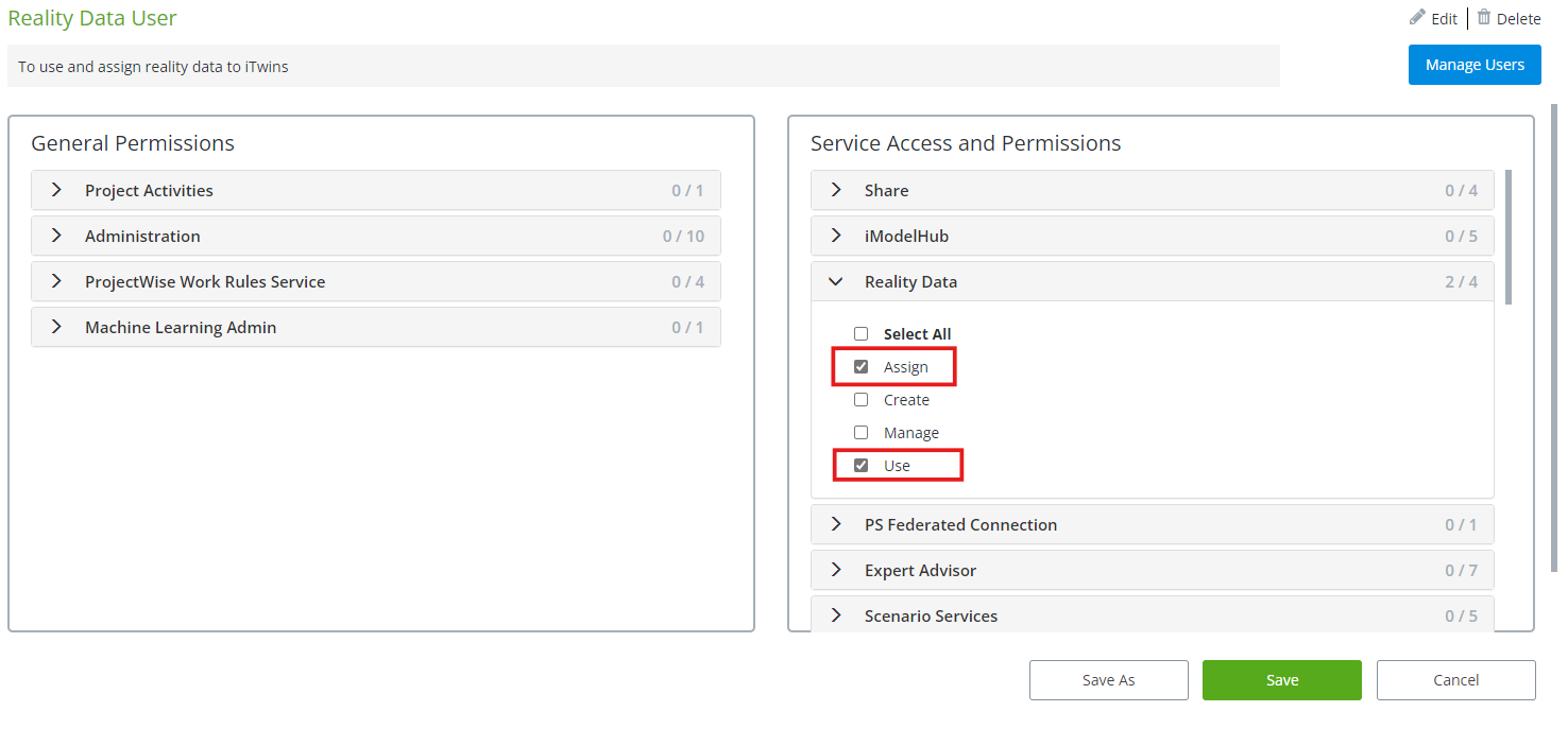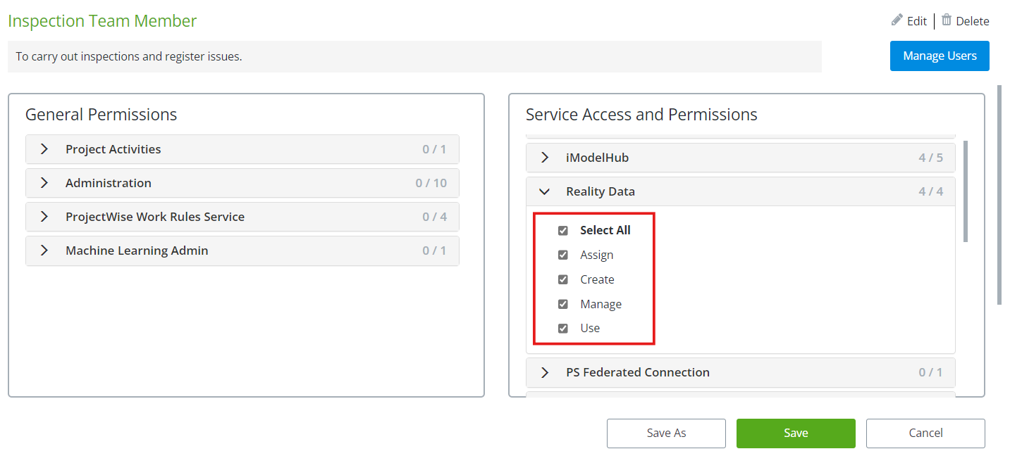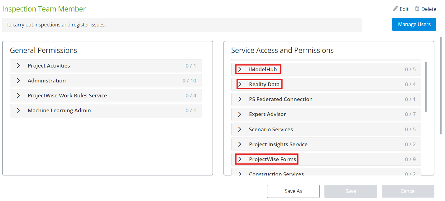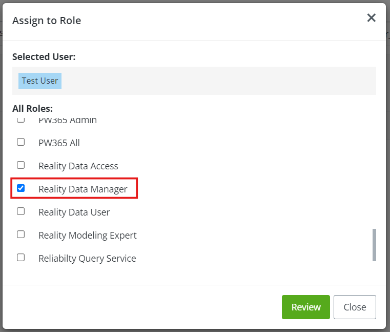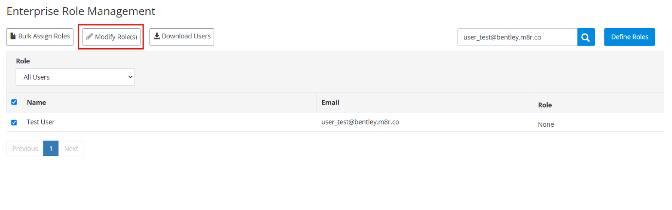 For additional information regarding User and Role management, see Bentley's RBAC Knowledge Base here: Roles and Permissions Knowledge Base