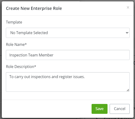 1. To create new "Inspection Team Member" role, we need to add required details which is shown in below snapshot. Then click on "Save" button.
