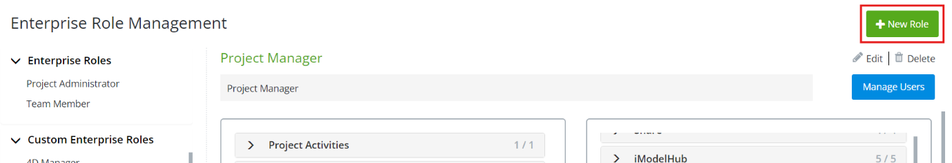 If an agency is managing multiple iTwins it is recommended that enterprise roles be created and configured which can then be reused across many iTwins within the system. Roles can be configured and created on individual iTwins if desired.